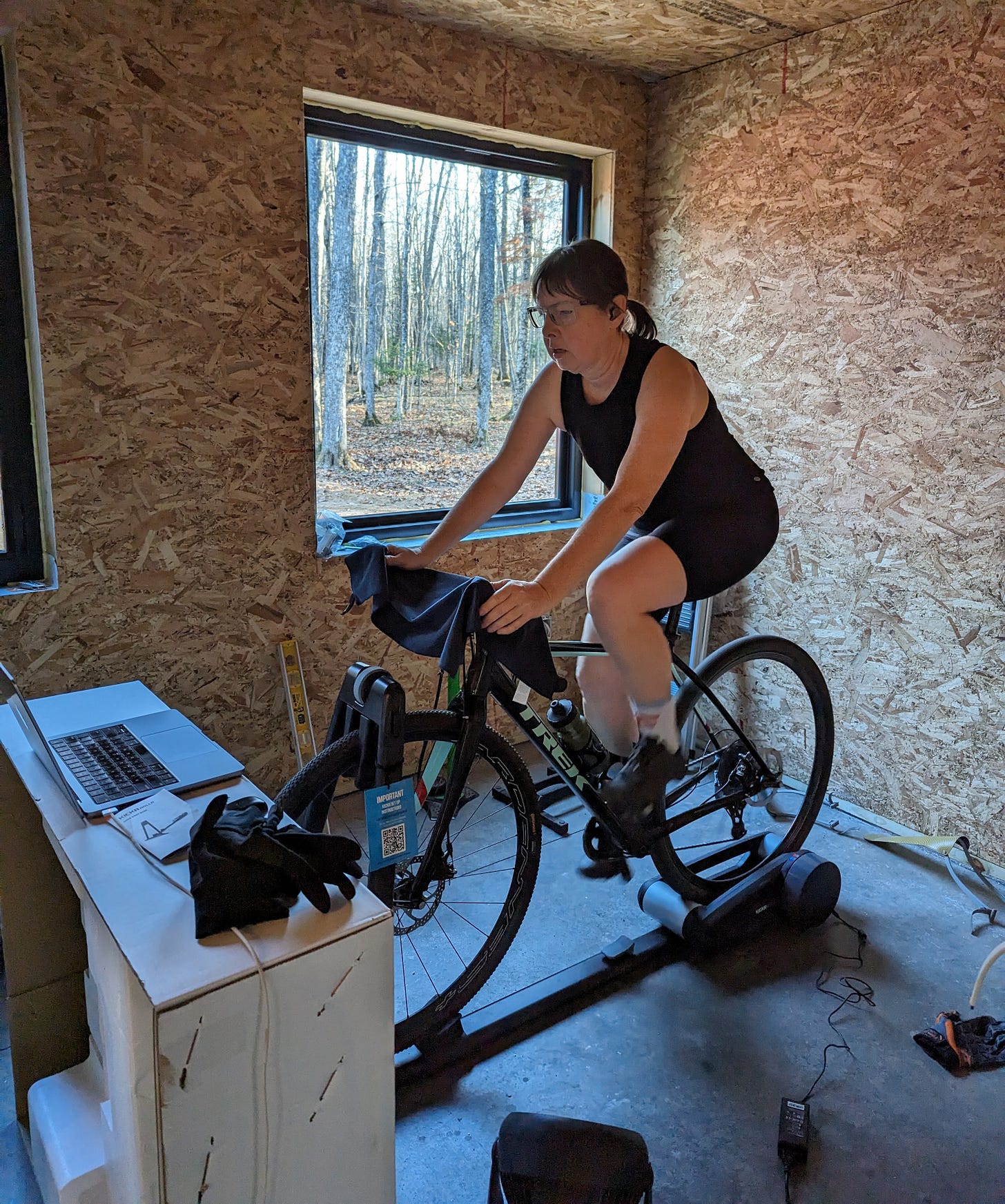 One new Crash Pad addition is a new style (to us) Wahoo trainer that Kurt put to good use on a solo trip up here for a week in October, and I tested out Thanksgiving morning. I had to invest in power meter pedals in order to do my virtual cycling classes, but it is already worth it. Although our time here over the winter will be shorter, because the cabin interior is still a glamping space, this investment is worth it.